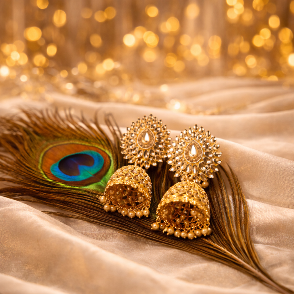 Radiant, regal, and timeless — the VISINORY Shimmer Bell Earrings are a classic celebration of Indian elegance with a luminous golden glow.
