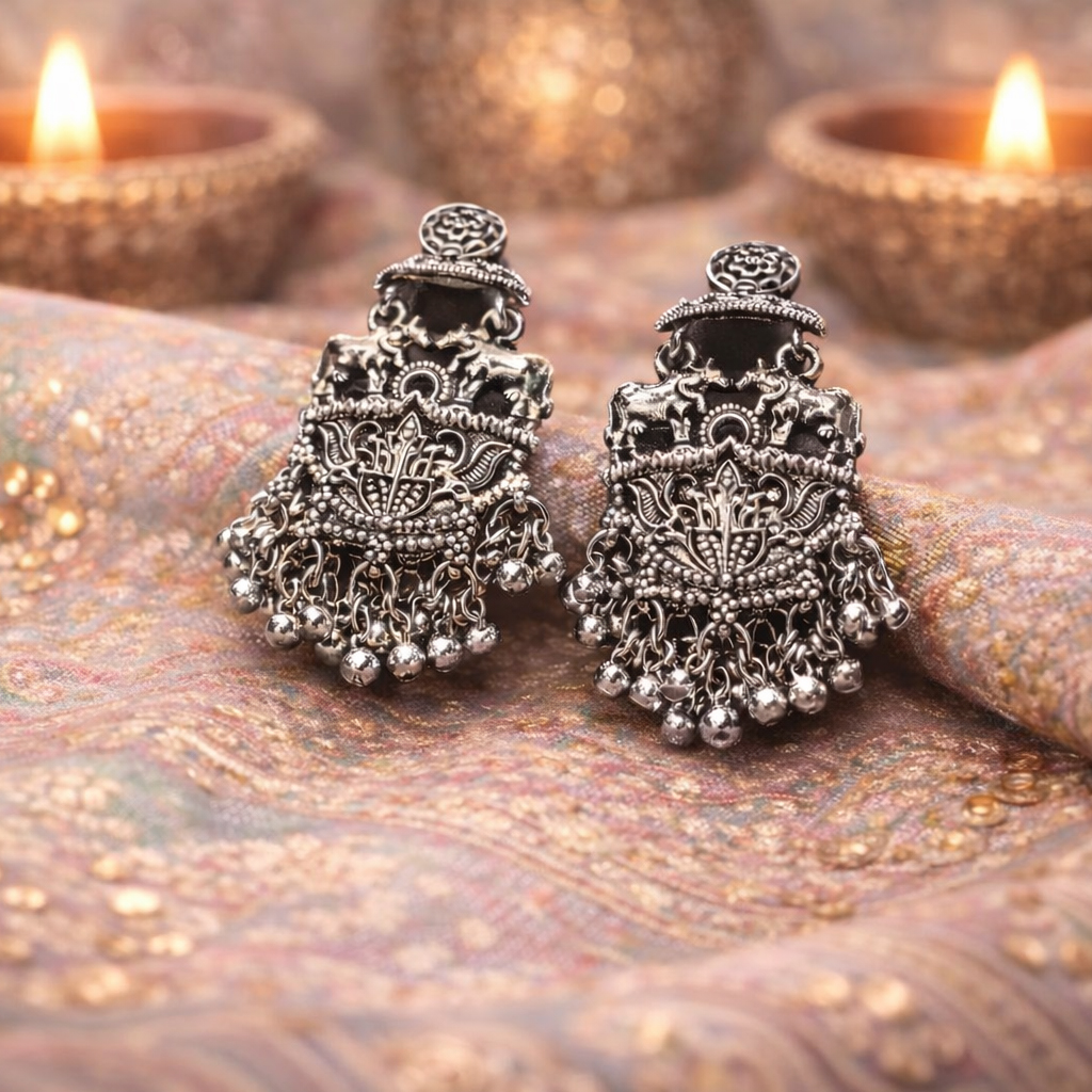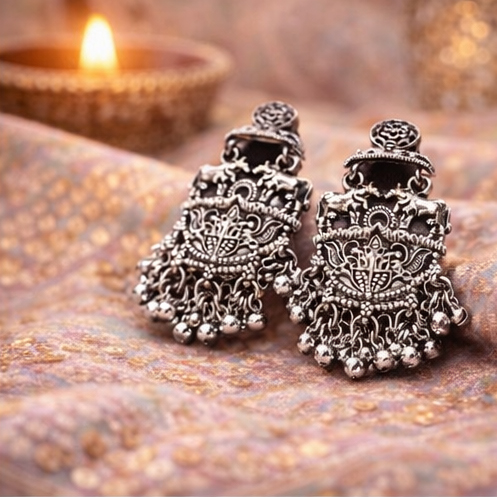 VISINORY SULTANA SILVER EARRINGS by VISINORY. Crafted with premium materials and elegant finishing. Perfect for daily wear, festive occasions and gifting.